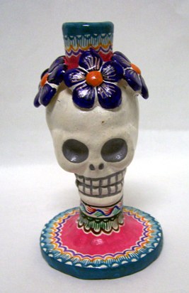xico is used during the Day of the Dead. The skull imagery is typical of objects associated with the celebration. Candles are an important element of the ofrenda, or altar, set up to honor deceased relatives and ancestors. Four candles are placed on the top level of the altar signifying the four cardinal directions. The light from these candles illuminates the way for the returning spirits of the ancestors. One candle for each deceased family member is located elsewhere on the ofrenda. One extra candle burns so that no one will be forgotten.